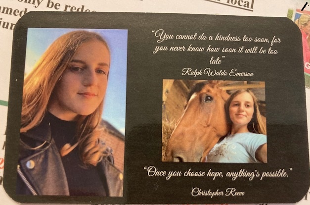 She and Miles are raising funds for the suicide prevention charity, Papyrus, and, as Brodie was a horse rider and showjumper, for Riders Minds, a charity dedicated to supporting the mental health and wellbeing of horse riders and equestrians.