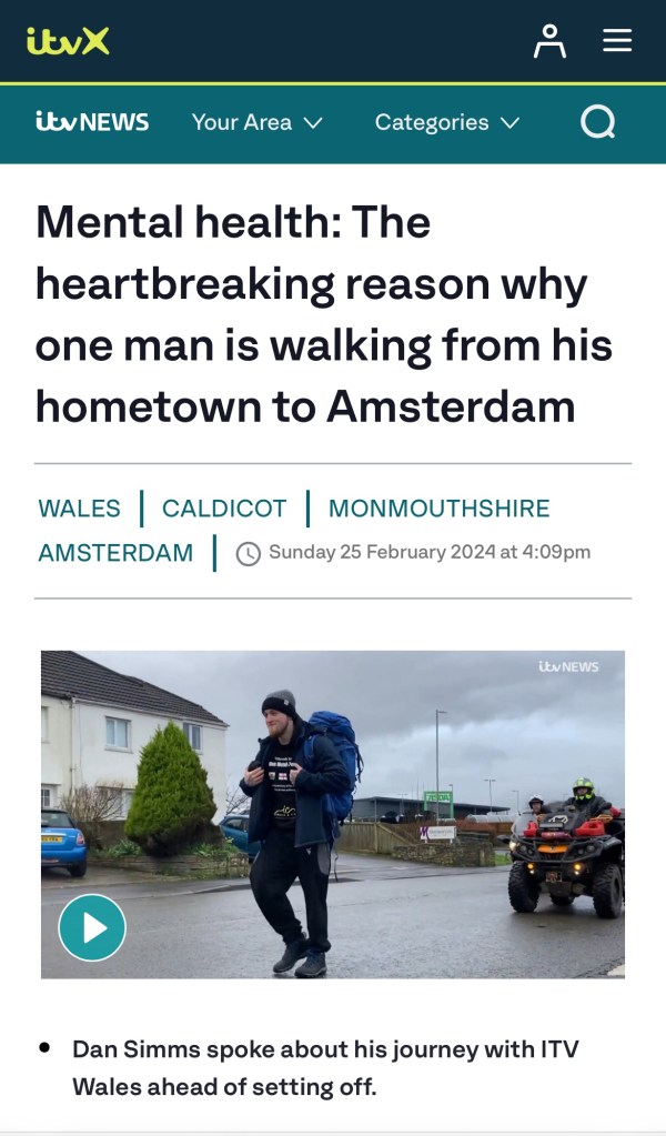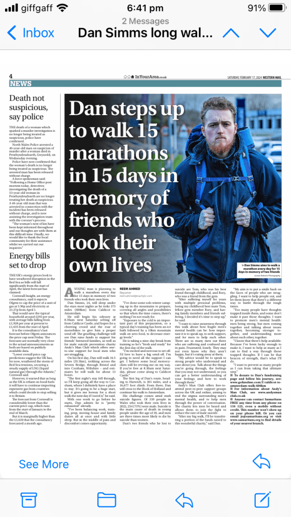 Here’s one of the pieces of media coverage I secured for strength coach, Dan Simms, for the media campaign to support his fundraising walk. I supplied the imagery to be used with this story.